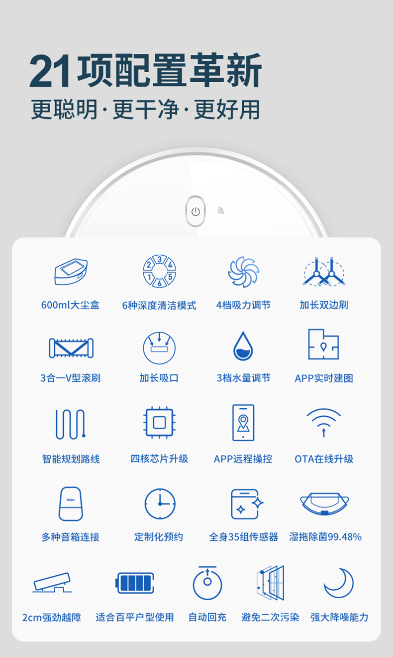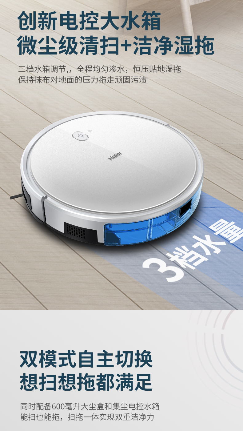 海尔扫地机器人家用全自动智能扫拖一体机拖地吸尘三合一吸小米粒